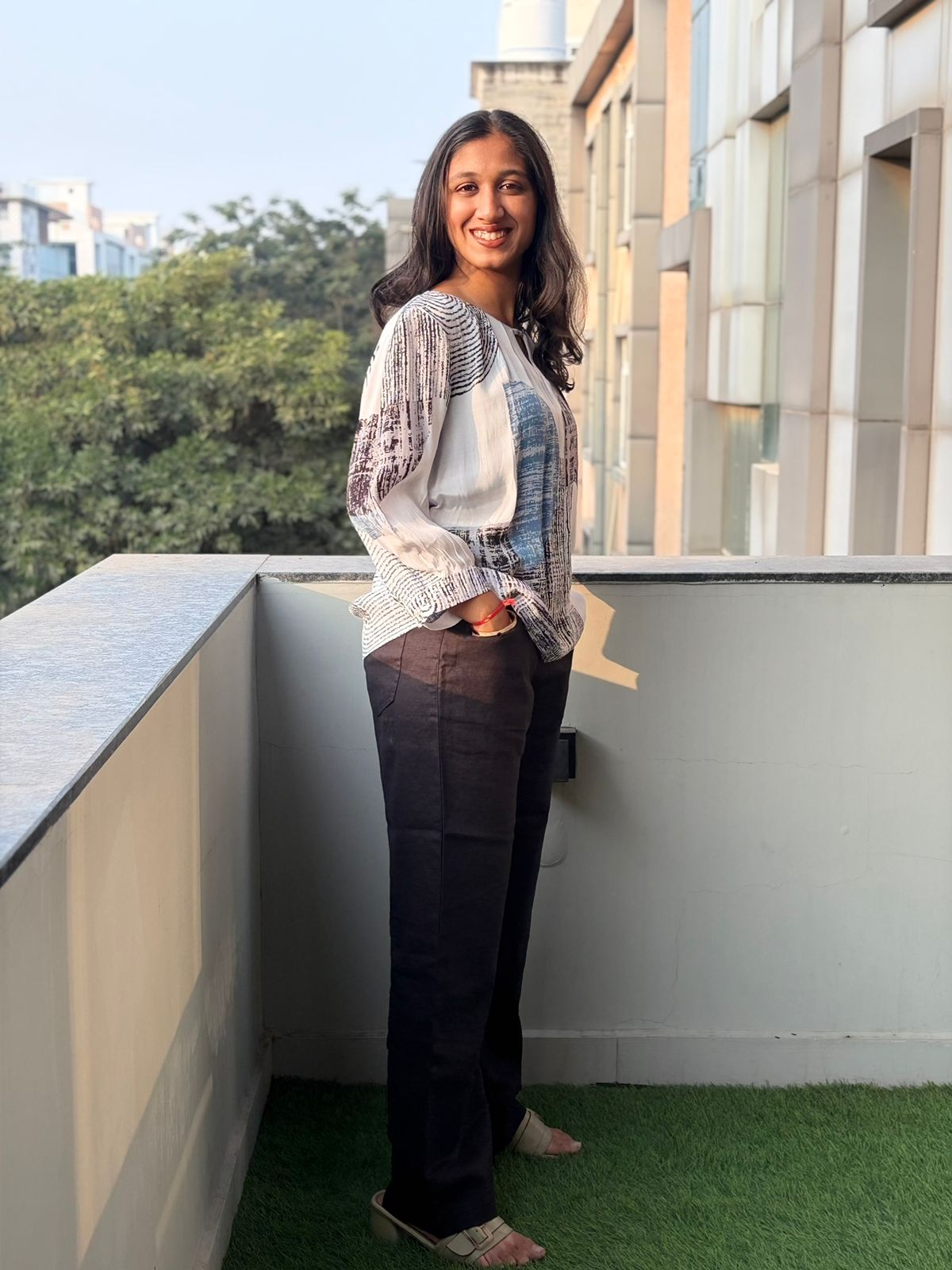 Pair it with a crisp white or printed linen shirt for a fresh daytime look, or style it with a structured blazer and flats for an elevated workwear outfit. Complete the look with neutral sandals or loafers for a chic, effortless finish.